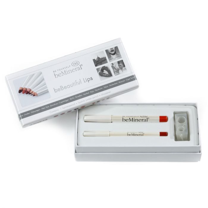 Deze stijlvolle beBeautiful Lips Kit bestaat uit een beMineral Lipstick Pencil, een bijpassende beMineral Lipliner Pencil en een puntenslijper.
